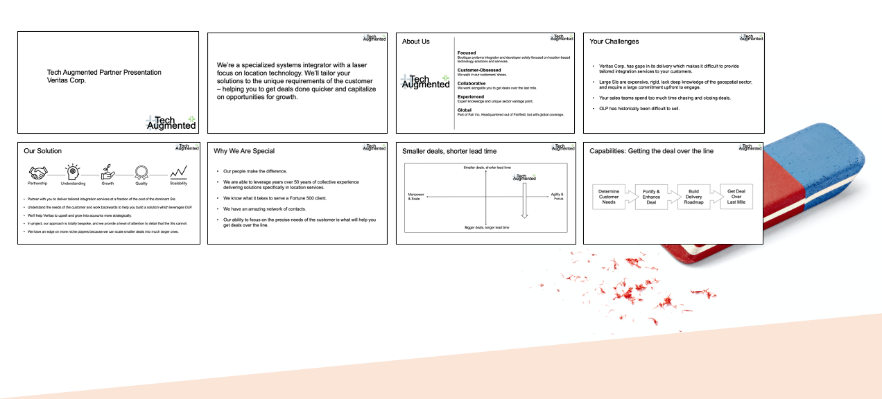 We work with your sales team to test the spoken delivery of your presentation and ensure you’re ready for game day.